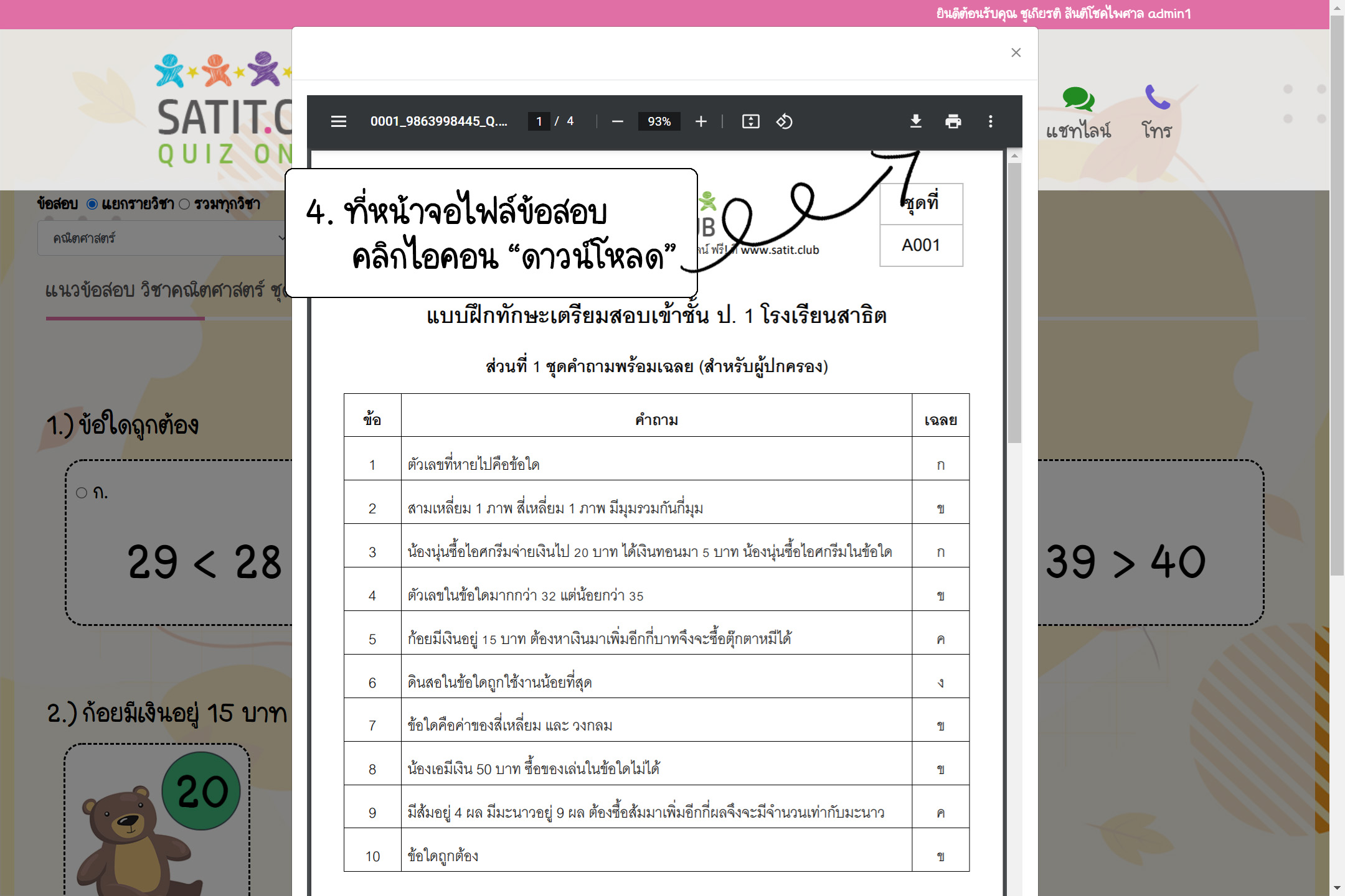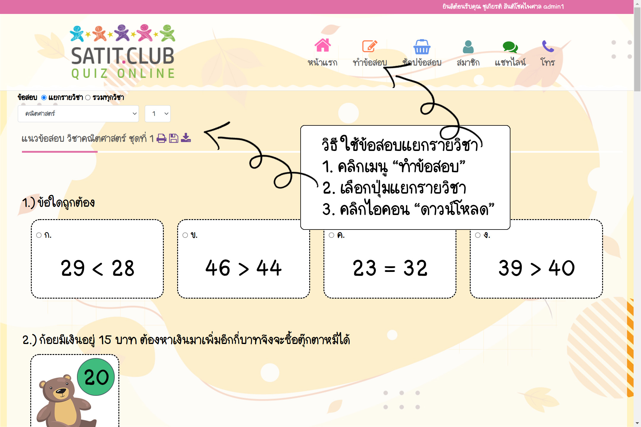 Satit.Club สามารถให้คำตอบได้ เป็นตัวช่วยให้ผู้ปกครองได้ทราบถึงแนวข้อสอบ ลักษณะของข้อสอบ ที่เป็นข้อสอบเข้า ป.1 สาธิตที่ครอบคลุมทุกวิชาที่ใช้สอบ สำหรับให้น้องๆ ได้ฝึกทำทั้งแบบออนไลน์ และ ให้ผู้ปกครองดาวน์โหลดไปให้น้องๆ ทำที่บ้านได้อีกด้วย