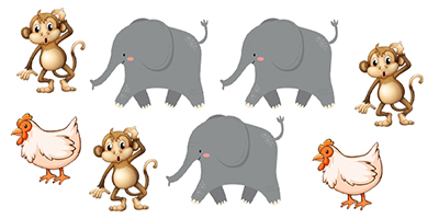 จากภาพ สัตว์ชนิดใดมีจำนวนเท่ากัน